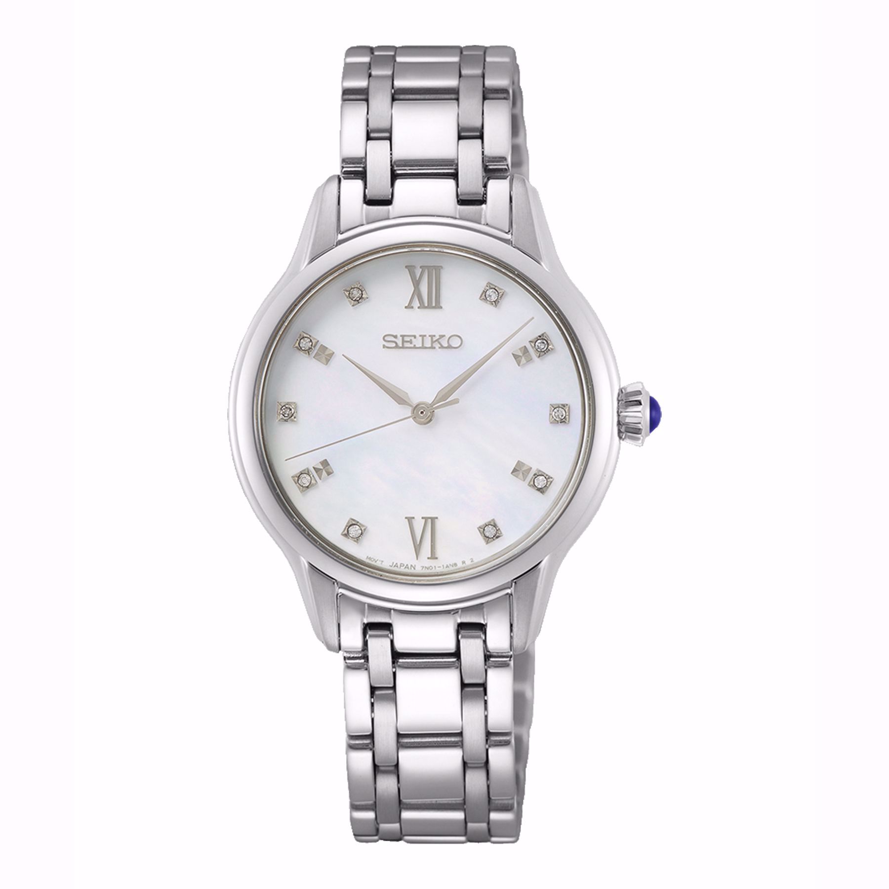 مجموعه ساعت واچ لند نيز به عنوان نماينده رسمي فروش شرکت توسعه کالای دماوند و سايت ساعت واچ لند به عنوان سايت معتبر خريد اينترنتي ساعت فعاليت مي كند. براي اطمينان از اصل و اورجينال بودن ساعت هاي سيكو مجموعه واچ لند مي توانيد سايت رسمي شركت سيكو و شرکت توسعه کالای دماوند را مطالعه كرده و با اطمينان و اعتماد كامل ساعت هاي سيكو رو از طريق خريد اينترنتي يا خريد حضوري از مجموعه ما تهيه كنيد این طرح از برند ساعت سیکو با طراحی و سادگی خود برای تیپهای مجلسی بسیار مناسب می باشد. از ویژگیهای منحصر به فرد این ساعت میتوان به طراحی بسیار شیک و مجلسی ساعت در عین سادگی آن اشاره کرد.