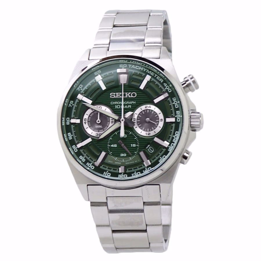 ساخت ژاپن - ساعت مچی بند استیل نقره ای، صفحه سبز یشمی مردانه سیکو SSB405P1 - 3 موتوره ( کرنوگراف ) - ضد آب ( تا 100 متر ) - 2 زمانه - نشانگر تاریخ - 2 سال گارانتی