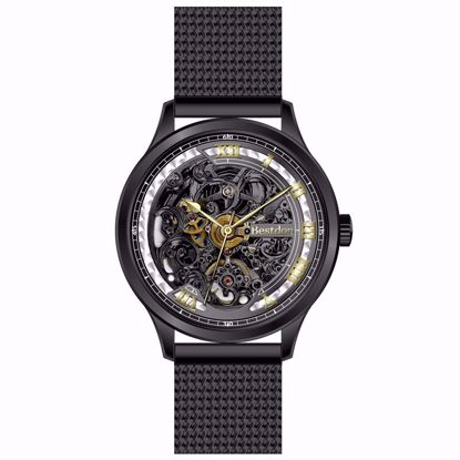 ساخت دانمارک - ساعت مچی بند استیل حصیری مشکی، صفحه نوک مدادی دور مشکی مردانه بستدون BD7191G-B06 - اتوماتیک - صفحه اسکلتون - اعداد رومی - استیل رنگ ثابت - 2 سال گارانتی