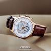 این طرح از برند سیتیزن مردانه میباشد و جنس بند آن چرم و بدنه ی آن استیل بوده و از ترکیب رنگهای سفید و رزگلد و قهوه ای در آن استفاده شده است. از جمله امکانات این طرح ساعت سیتیزن می توان به داشتن آلارم، کرنوگراف بودن این ساعت، داشتن نمایشگر وضعیت 24 ساعته، دو ساعته بودن، داشتن امکان اخطار اتمام شارژ باطری، داشتن توانایی ذخیره شارژ باطری، داشتن امکان ممانعت از شارژ بیش از حد باطری و نیز تقویم خودتنظیم صدساله اشاره کرد. این ساعت اکودرایو بوده و باطری آن با نور شارژ می شود.