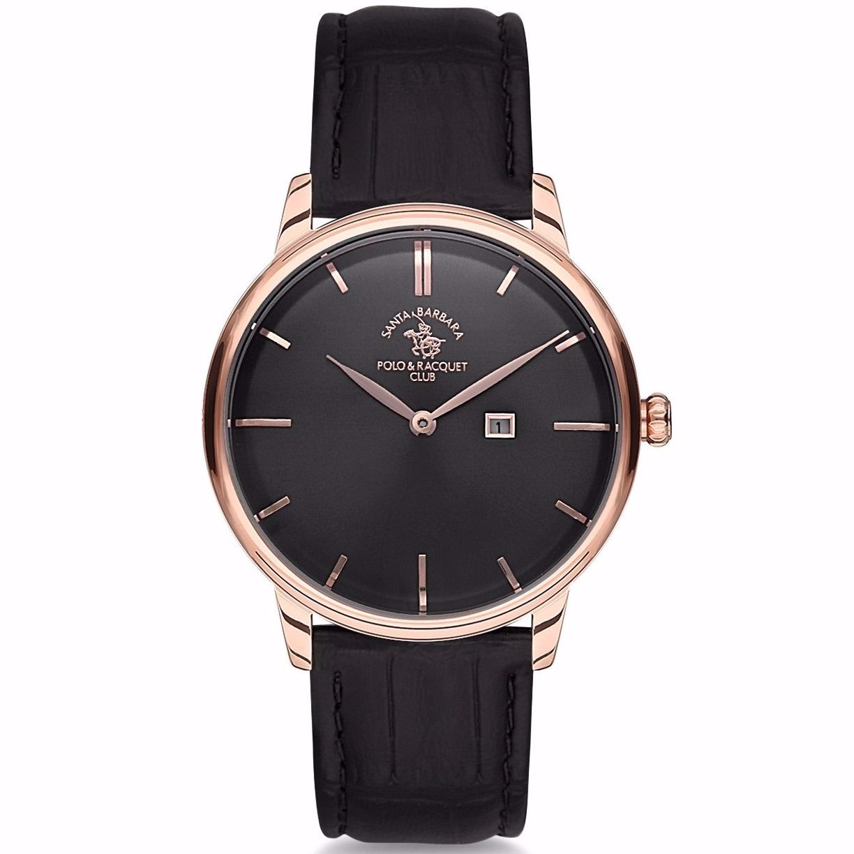 این طرح از برند ساعت پولو سانتا باربارا با طراحی خاص خود برای تیپهای مجلسی بسیار مناسب میباشد. بند این ساعت پولو از جنس چرم و بدنه ی آن از جنس استیل است و از ترکیب رنگ های مشکی و رزگلد در آن استفاده شده. از ویژگیهای منحصر به فرد این ساعت میتوان به طراحی ساده ی ساعت اشاره کرد که برای تیپهای مجلسی و رسمی بسیار مناسب میباشد و همچنین طراحی صفحه ی این ساعت که خاص بوده و زیبایی آن را دو چندان میکند. همچنین این طرح از برند پولو دارای نمایشگر روزهای ماه نیز است.